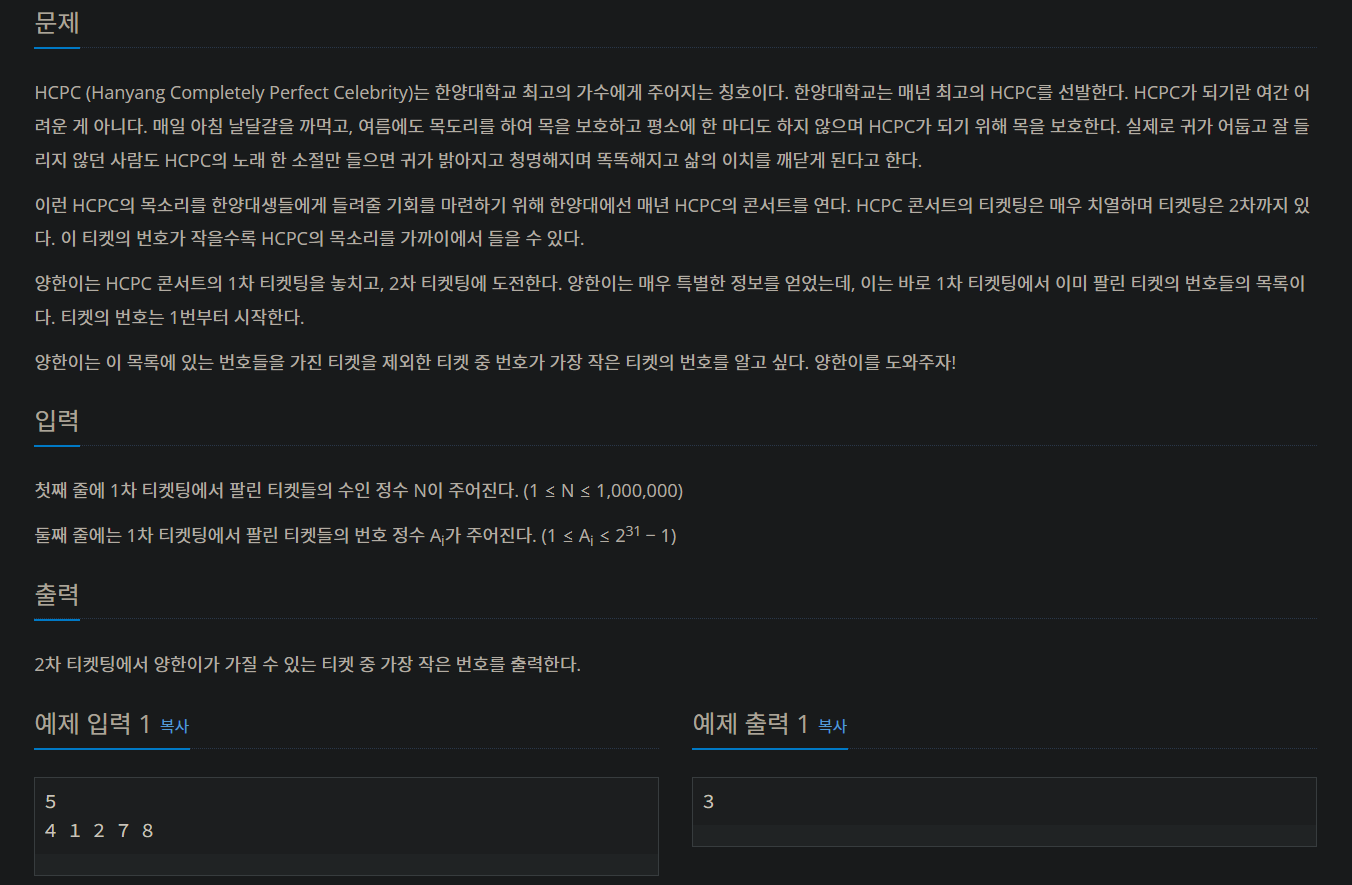 티켓 번호 5개를 4, 1, 2, 7, 8 이렇게 받았다면 1, 2, 4, 7, 8으로 정렬하고 for문으로 5개를 검사하는데 인덱스는 0부터 시작이므로 +1을 해주어서 1부터 5까지 값이 같은지 확인을 한다