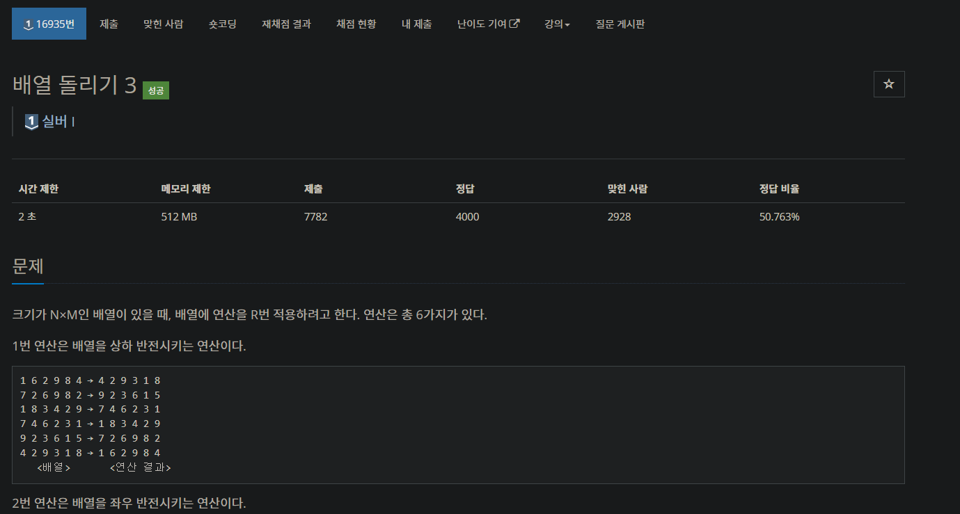 7. 5번 연산 -> n // 2, m // 2의 4개 배열로 나누었을때 시계 방향으로 돌아가는거고 6번 연산 -> 반시계 방향으로 돌아가면서 재배열