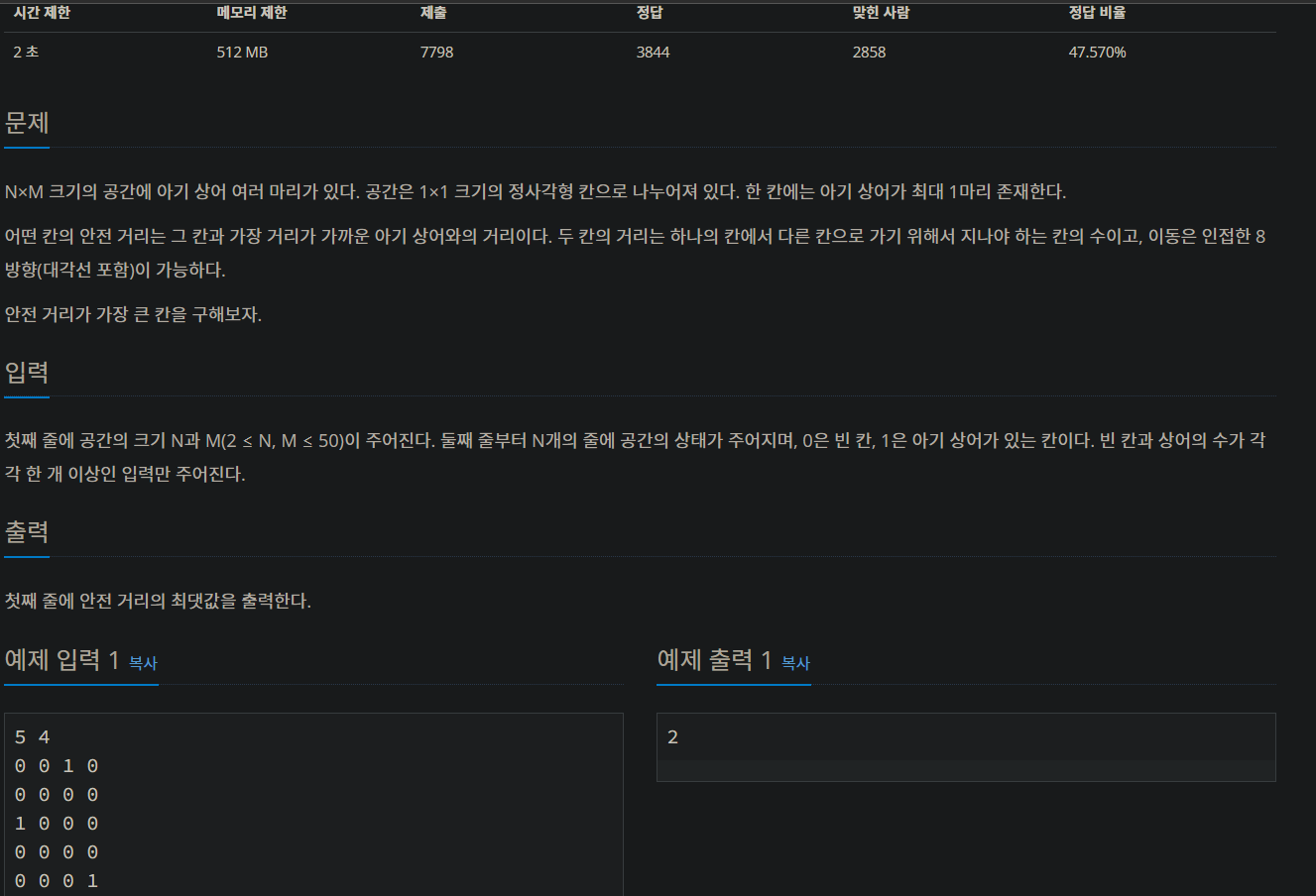 좌표값이 1인 x,y좌표를 큐에 넣고 그 값들로 값들이 0인 부분들을 bfs 함수 내에서 바꿔주면 된다. 그러고 난 후, graph 이차원 배열 내에서 최댓값을 구해주는데 -1을 해줘서 출력한다!!! 첫 시작값이 1이기 때문이다!