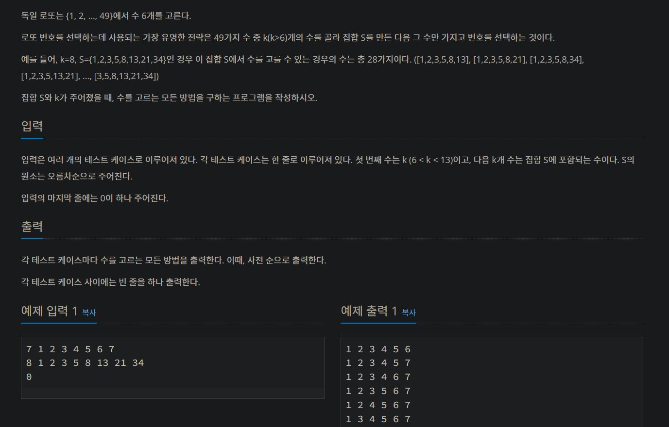 6개가 되었을 경우 출력하고 맨 뒤의 수를 pop으로 제거하여 전 단계로 돌아가는 구조라고 이해했다.