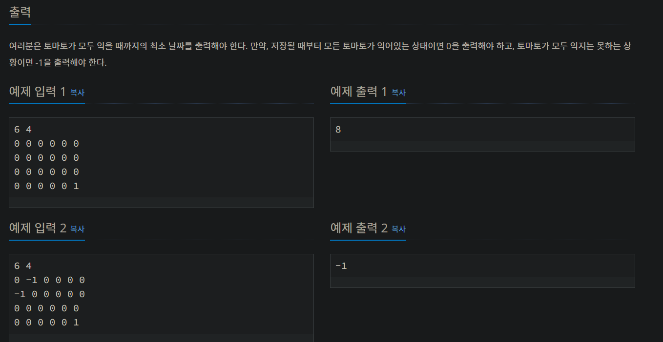 마지막에는 전부 토마토를 익혔다면 -1해주어서 출력했다.