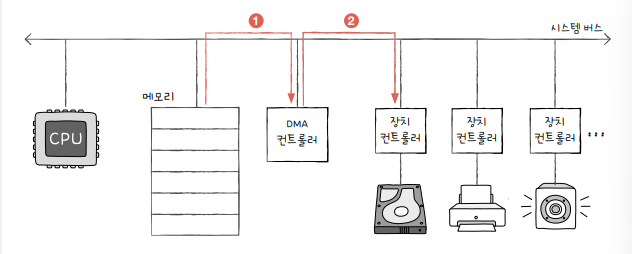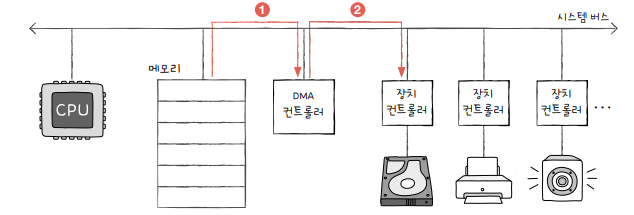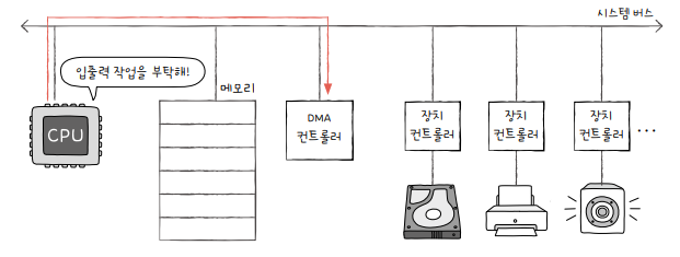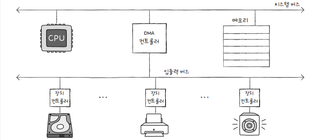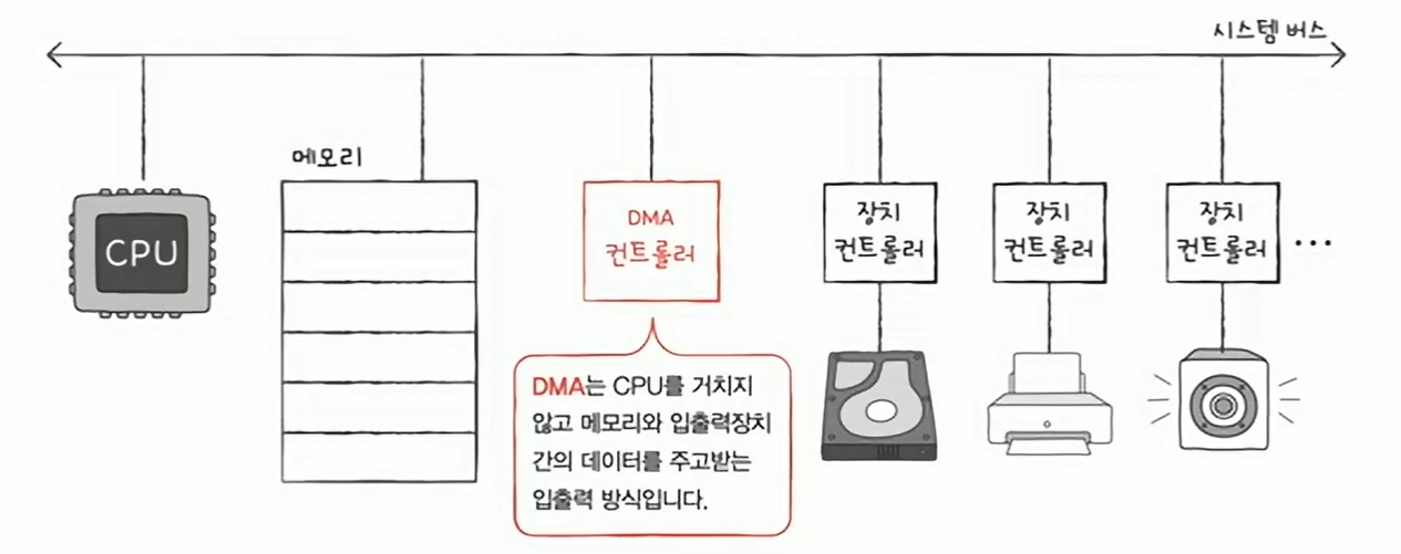 DMA 입출력을 하기 위해서는 시스템 버스에 연결된 DMA 컨트롤러라는 하드웨어가 필요하다.