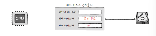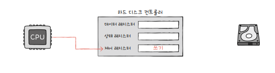 cpu -> 하드디스크 컨트롤러의 제어 레지스터에 쓰기 명령을 보냄