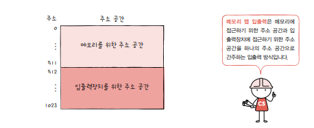 CPU가 ‘517번지를 읽어라’라는 명령어를 실행했을 때 517번지가 메모리상의 주소를 가리킨다면 CPU는 메모리 517번지에 저장된 정보를 읽어 들일 것이고, 517번지가 프린터 컨트롤러의 상태 레지스터를 가리킨다면 CPU는 프린터의 상태를 확인할 수 있을 것이니까.