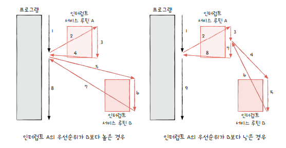 우선순위를 반영하여 다중 인터럽트를 처리하는 방법에는 여러 가지가 있지만, 많은 컴퓨터에서는