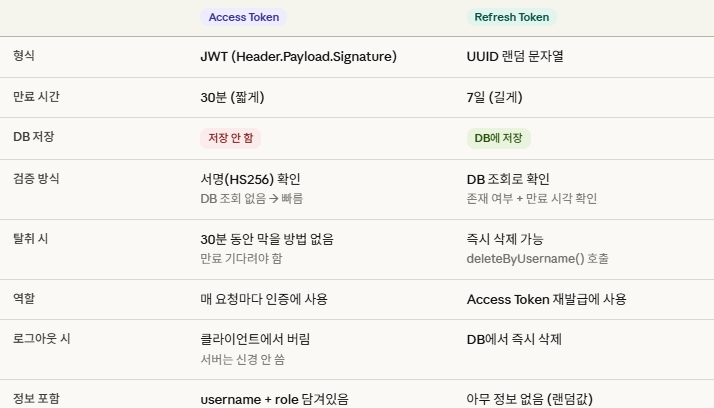 Refresh Token → UUID → 탈취돼도 DB에서 즉시 삭제 가능
