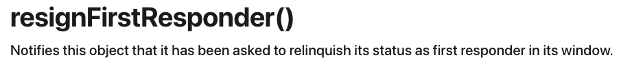 그러면 이쯤에서 resignFirstResponder() 메소드의 의미를 공식문서를 통해 확인해보자!