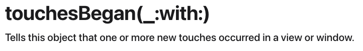 여기서 해당 오브젝트라는 말은 touchesBegan 을 오버라이드한 Responder객체가 될 것이다. 보통 ViewController에서 많이 호출하니까 보통의 경우에는 VIewController가 될 것이다.