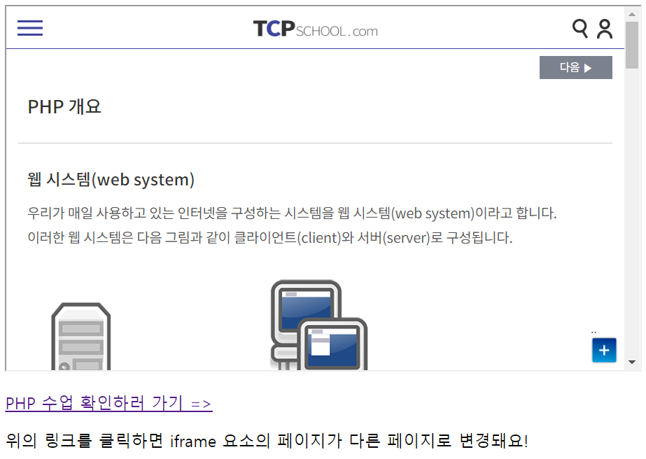<a href="/php/intro" target="frame_target">PHP 수업 확인하러 가기 =></a>