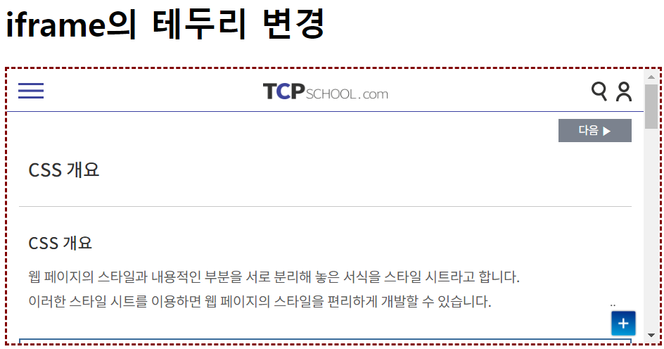 또한, iframe 요소는 명시된 크기로 삽입되는 창의 크기가 고정된다.