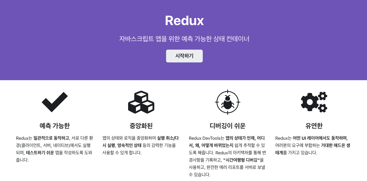 우리가 위에서 말한 “중앙 state 관리소”를 사용할 수 있게 도와주는 패키지(라이브러리) 입니다. “중앙 state 관리소" 를 통해서 State를 관리한다는 아이디어는 굉장히 좋으나, 우리가 그것을 직접 구현하기는 아직 어려우니까요. 패키지(라이브러리)의 도움을 받아 그것을 구현해보고자 합니다.