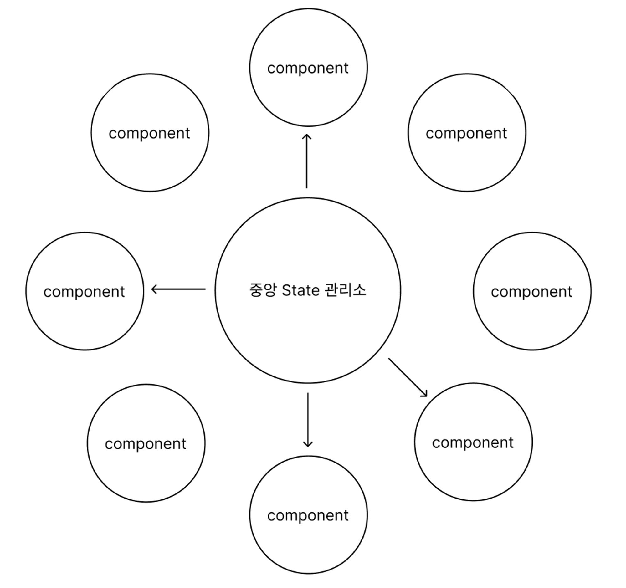 중앙 State관리소에서 State를 생성하고, 만약 어떤 컴포넌트에서 State가 필요하다면 컴포넌트가 어디에 위치하고 있든 상관없이 State를 불러와서 사용 할 수 있게 됩니다. 이렇게 특정 컴포넌트에 종속되어 있는 것이 아니라 “중앙 state 관리소”에서 생성된 State를 Global state라고 합니다. 그리고 이러한 값들을 관리하는 것을 전역 상태 관리 라고 합니다.