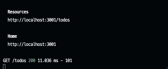 짠 ✨ 우리가 db에 넣은 todo가 정상적으로 보이죠? 브라우저 주소에 URL을 입력한다는 것은 GET 요청이에요. 우리는 우리가 만든 API 서버에 GET 요청을 한 셈이죠.