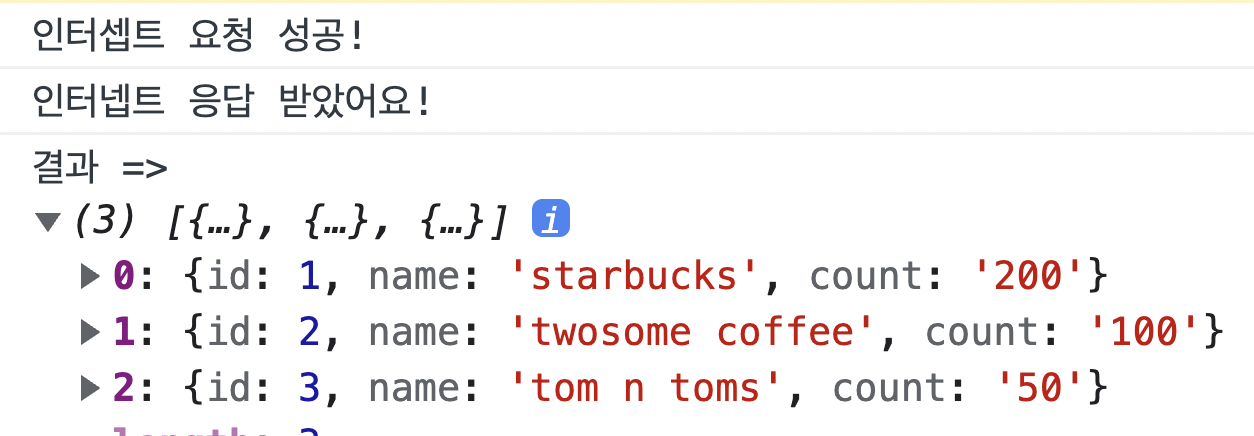console.log("인터셉트 요청 성공!");