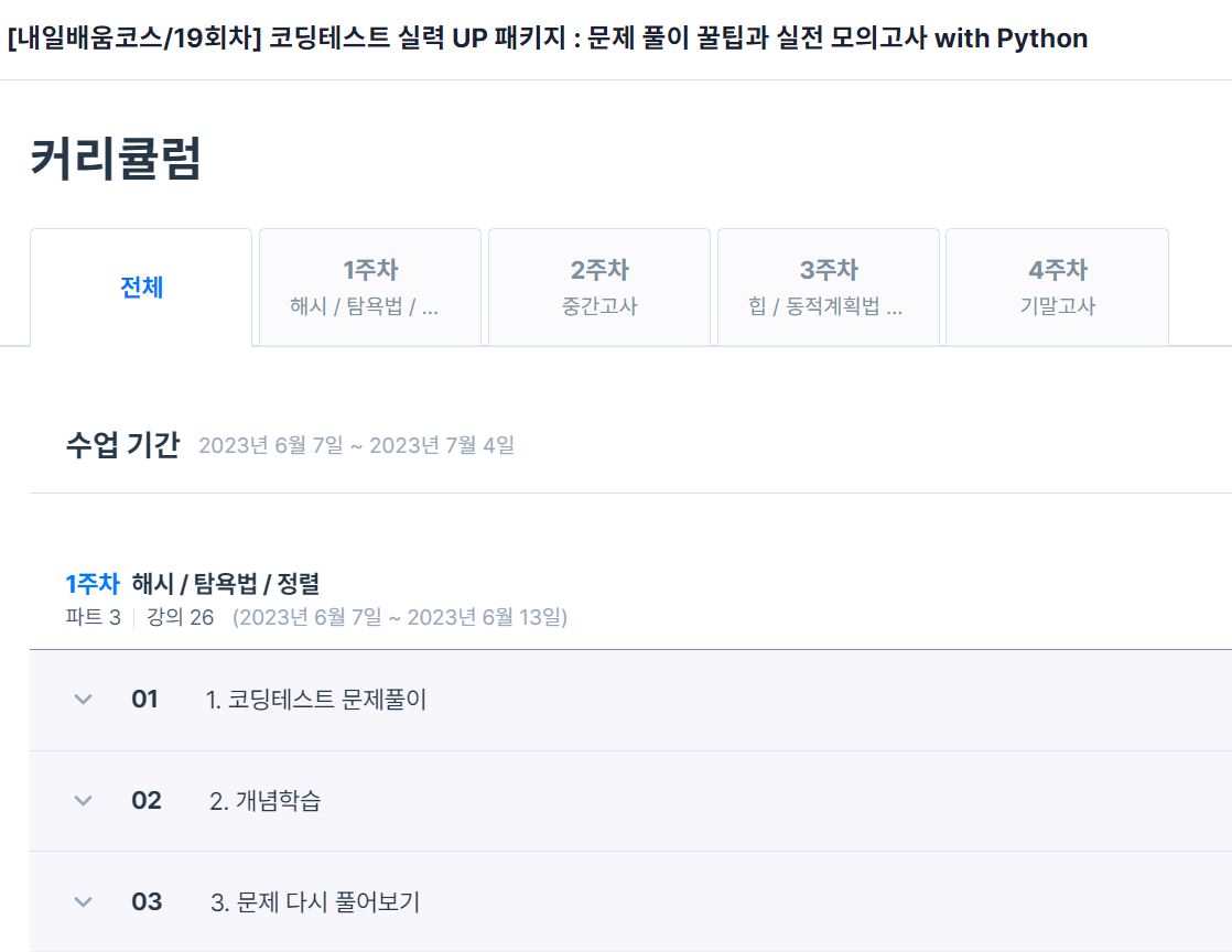 강좌명: [내일배움코스] 코딩테스트 실력 UP 패키지 : 문제 풀이 꿀팁과 실전 모의고사 with Python