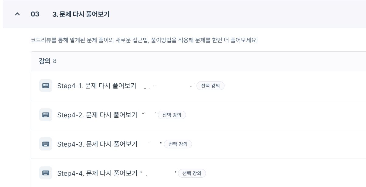 - 정해진 기간(4주) 안에 코딩테스트 빈출유형을 가볍게 훑을 수 있음
