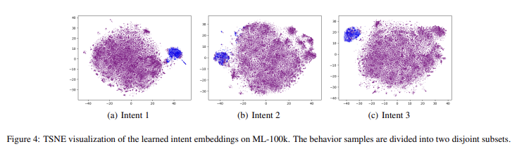 - 이는 Δd 차원의 행동 표현에 대한 임베딩을 기반으로 user가 의도 k를 가지고 item을 선택할지 말지에 대해 모델이 판별할 수 있다는 의미(실험 해석)