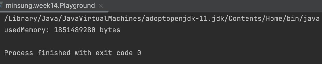 당연히 첫 번째 코드는 배열을 계속 새로 생성하고, 두 번째 코드는 배열의 값을 바꾸는 것이니 메모리 사용량의 차이가 있는 것이 아닌가? 라는 질문을 할 수도 있지만, 자바에는 Garbage Collector(GC) 라는 것이 존재해서 힙 영역에서 참조되지 않는 객체는 자동으로 제거가 되기 때문에 당연히 메모리 사용량의 차이가 없을 줄 알았다.