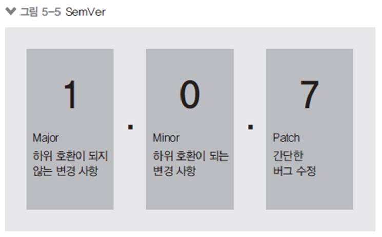 - Major(주 버전), Minor(부 버전), Patch(수 버전)