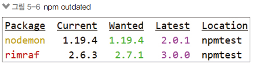 - npm outdated: 어떤 패키지에 기능 변화가 생겼는지 알 수 있음