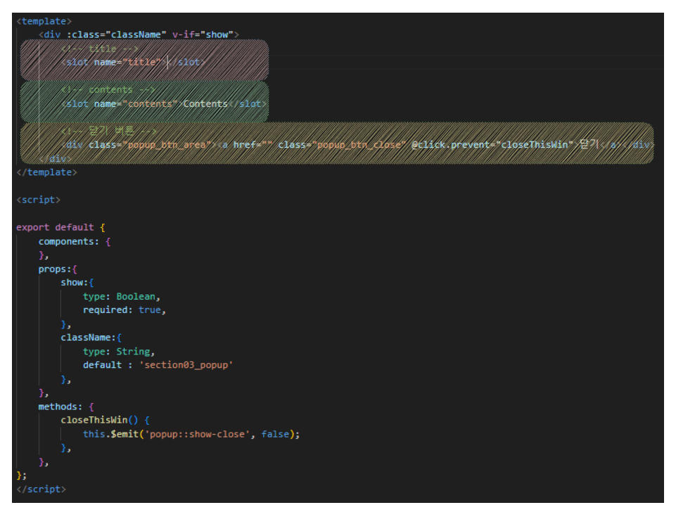 만약 react로 작성한다면 slot 부분은 children을 사용, emit 부분은 props로 setter를 받거나, 전역 상태로 팝업창 상태로 관리하면 될 것 같습니다.