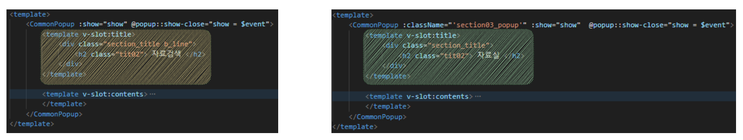 • title 부분은 css(className)과 title명을 다르게 전달했습니다.