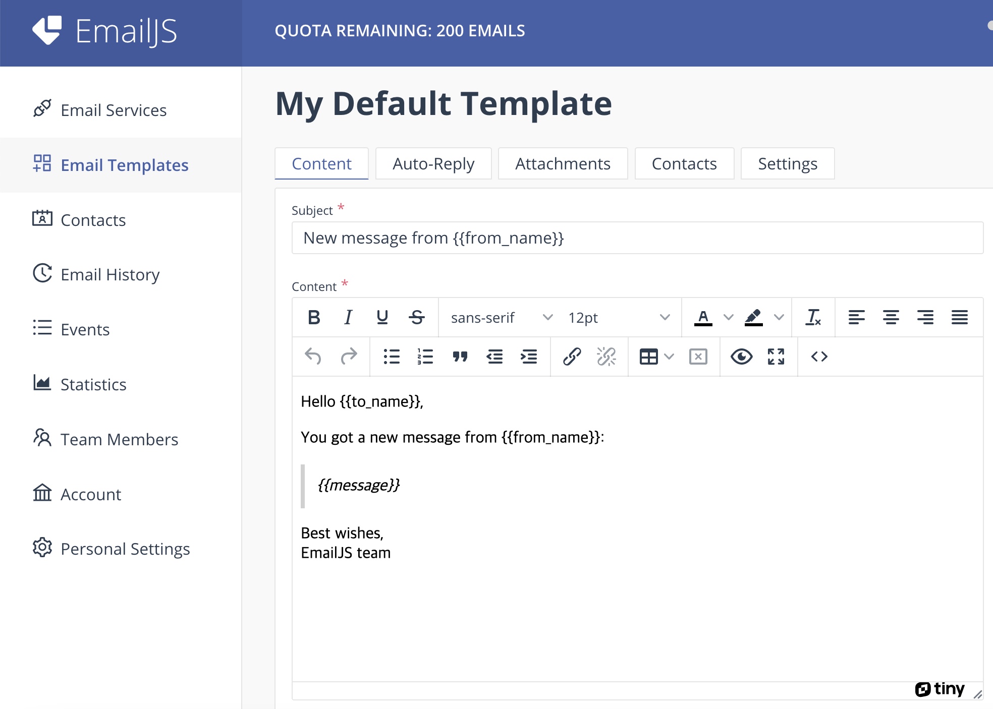 왼쪽 상단에 Email Templates 창으로 이동해서 원하는 템플릿을 작성해준다.