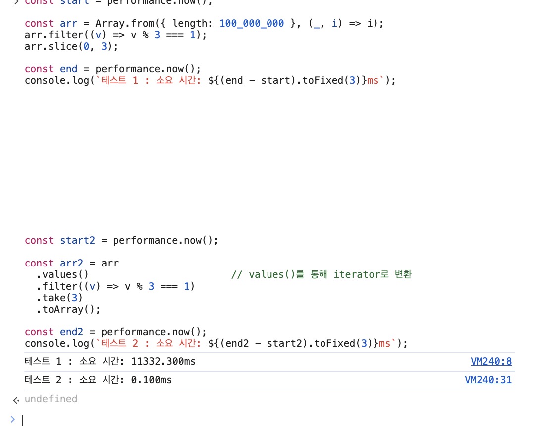 지연 평가의 경우 1개씩 처리하는 과정으로 진행됩니다.
