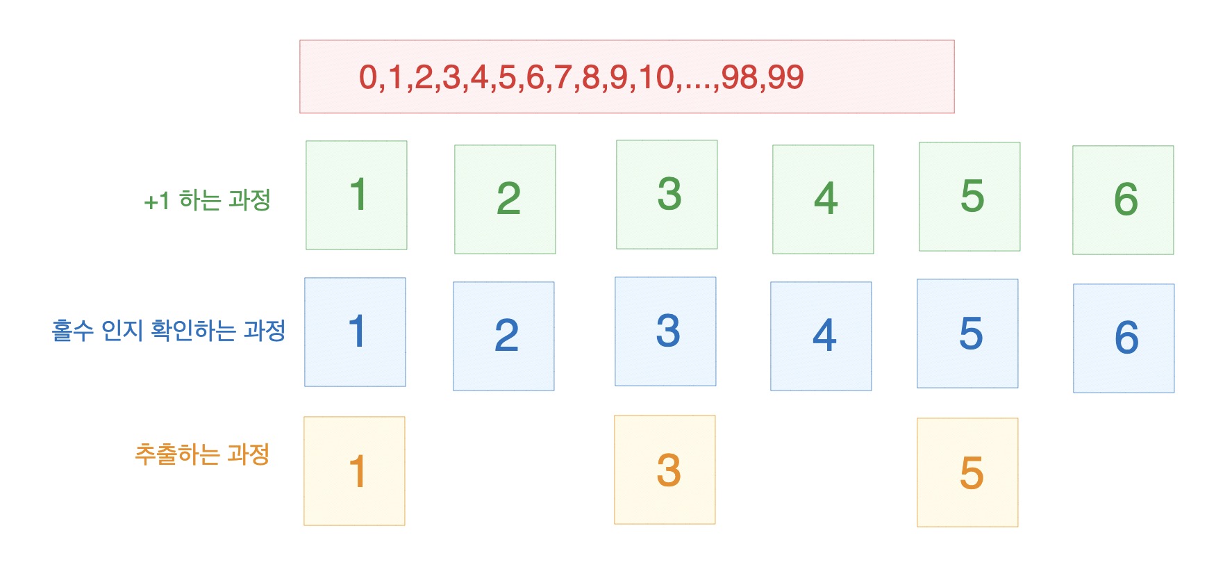 예를들어 모두 1씩 더한 뒤, 홀수인 값들 중, 앞에서 3개를 추출하는 조건의 경우