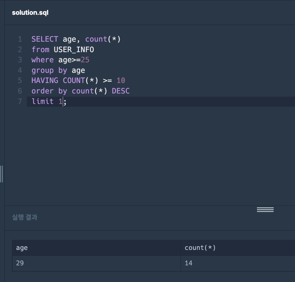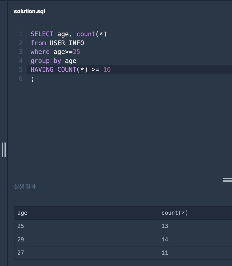 이미 위에서 하나 사용했지만 COUNT(), AVG(), SUM(), MAX(), MIN() 등 다양한 집계 함수 제공