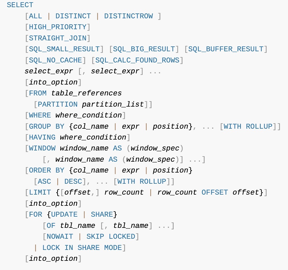 MySQL, PostgreSQL, Oracle등 SQL 문법은 대부분 공통이며, 일부 차이가 있습니다.