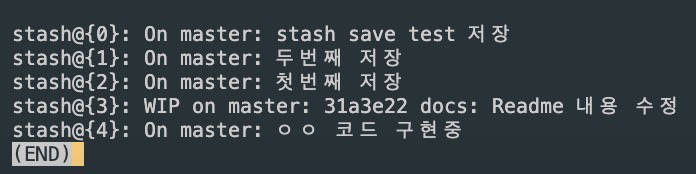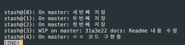git stash list : stash된 list 목록 확인
