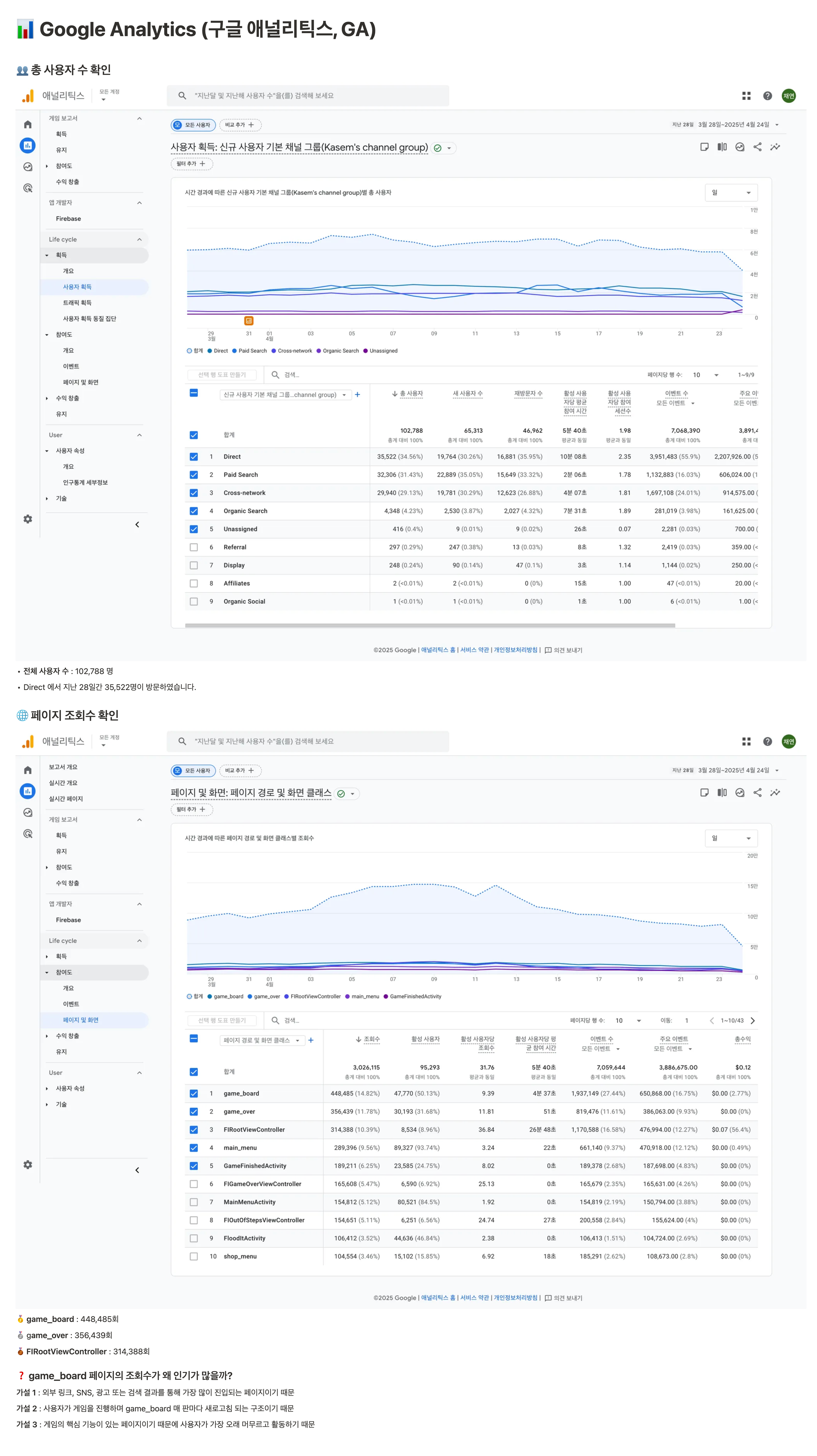 ∙ 어떤 페이지가 가장 많이 방문되는지, 머문 시간은 얼마나 되는지