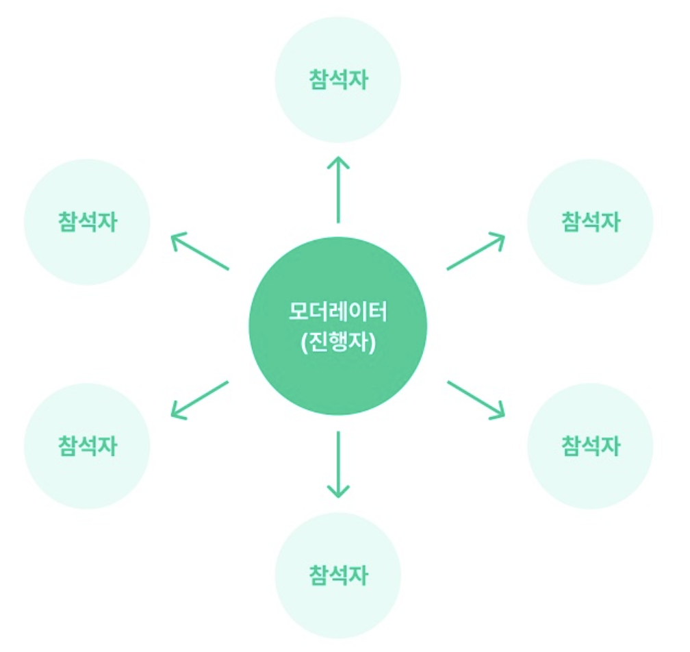 ✅ 계획적이며 구조화되어 있는 토론 방식이기 때문에, 짧은 시간 안에 많은 정보를 이끌어낼 수 있으며 1:1 인터뷰보다는 많은 사람의 의견을 한 번에 수집할 수 있음