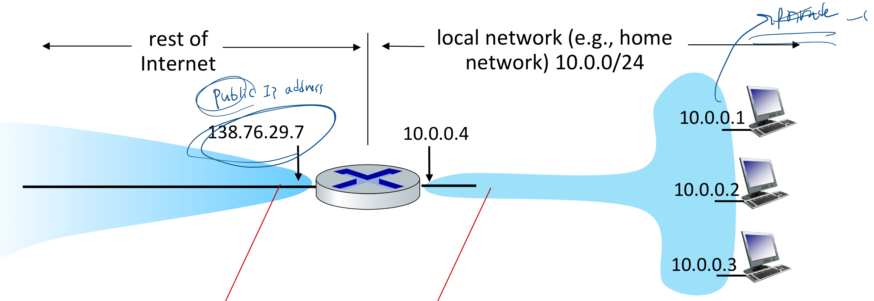 ▪ subnet 내의 host를 위해 provider ISP로부터 하나의 IP 주소 받으면 됨 -> 외부 연결을 위한