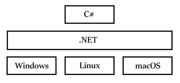 하지만 C#의 경우 운영체제와 C# 프로그램 사이에 계층이 존재하는데, 이를 .NET이라 한다. 이 .NET이 존재하기 때문에 하나의 코드로 여러 운영체제에서 동작할 수 있는 것이다