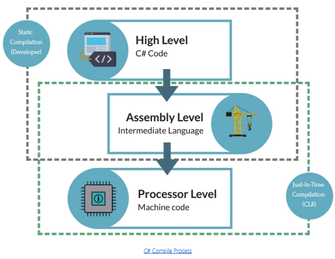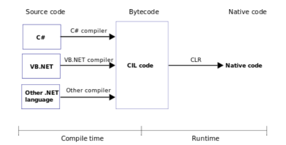C# 프로젝트를 빌드할 때 C# 코드는 CLI 사양을 준수하는 중간 언어(Intermediate Language)로 컴파일 된다.