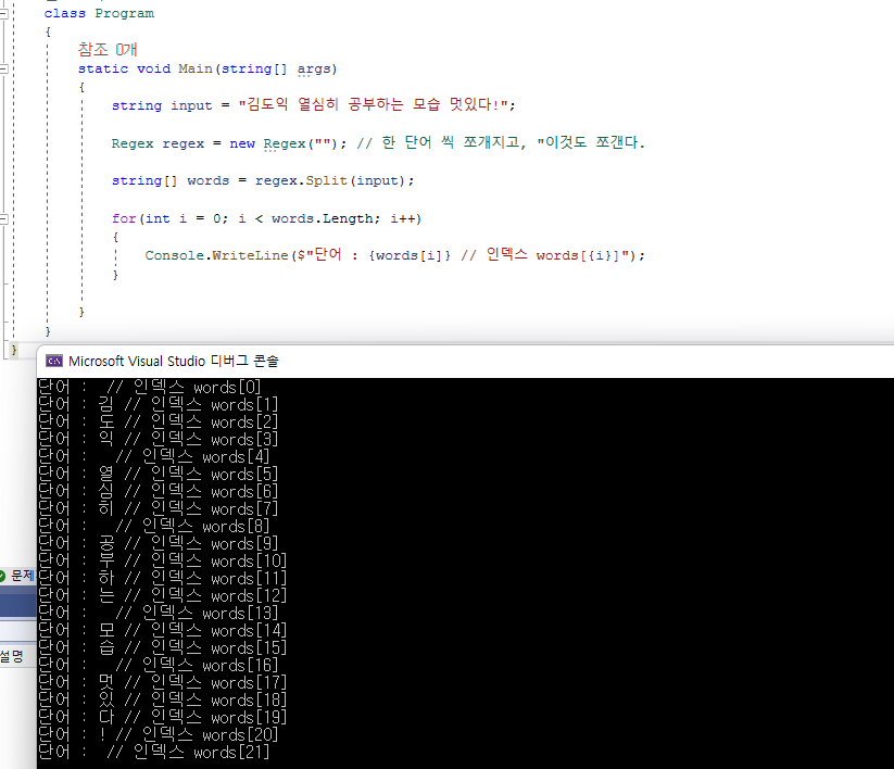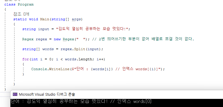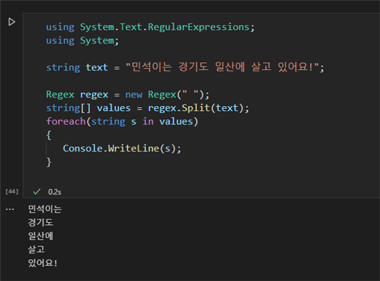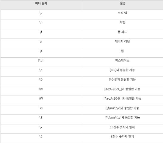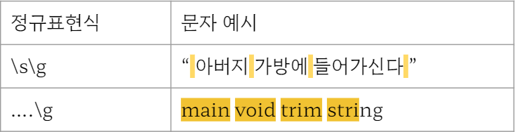 공백문자 “ ” 는 ‘ \s ’를 사용합니다. 공백문자를 제외하는 경우는 ‘ \S ’ 입니다.