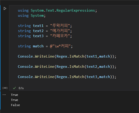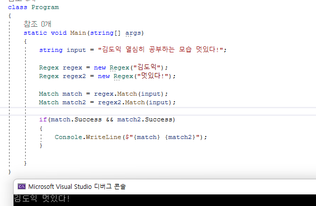 IsMatch() - 해당 문자열에서 일치하는 부분이 있는지 확인