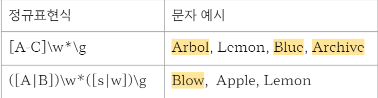 “문자 그룹”을 사용하면 그룹에 포함된 / 포함되지 않은 문자를 찾을 수 있습니다.