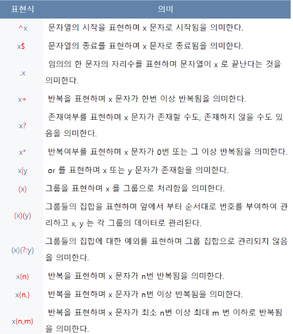문장에서는 ^과 $를 사용합니다. 맨 앞에 오는 경우 ‘ ^ ’ 맨 뒤인 경우 ‘ $ ’ 를 사용합니다.