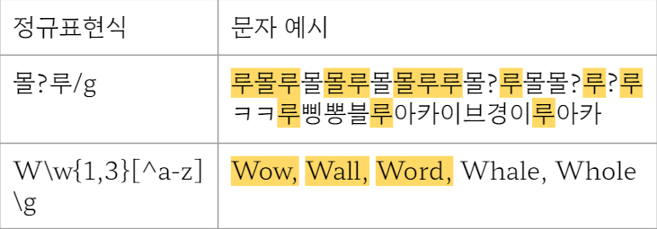 “수량자”를 이용하면 특정 문자가 몇번 나오는지 관계없이 검색이 가능합니다.