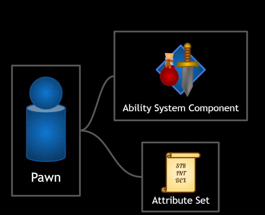 단어가 생소해 복잡하다면 Actor(게임캐릭터, 적 몬스터 등등)가 GAS의 기능을 이용하기 위해서는 ASC가 부착되어 있어야하며 Attributes라는 기능을 위해 추가적으로 Attribute Set이라는 것도 필요하다 라고 이해만 해도 무방합니다.