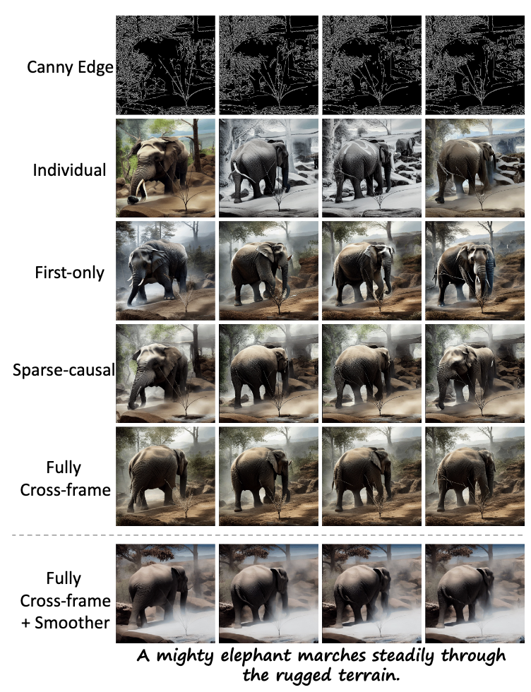 그런다음 long-range coherence를 위한 fully cross-frame attention으로 key frames을 미리 생성한다. q,k,v는 다음과같다.