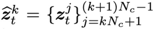 video 생성은 frame만큼 이미지를 생성해야하기 때문에 GPU 사용량이 많다. 따라서 clip-by-clip manner로 긴 비디오를 생성하는 방법을 제시한다. 각 timestep에서 긴 비디오t = { }는 선택된 key frame = { }을 사용하여 여러개의 작은 비디오 클립으로 분리된다. 각 클립의 길이는 -1이고 k-th 클립은 다음과 같이 표현된다.