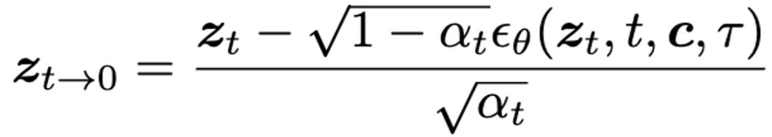 t에서 interleaved-frame smoother를 적용하기 전에, 아래 수식과 같이 를 사용하여 깨끗한 비디오 latent 를 예측