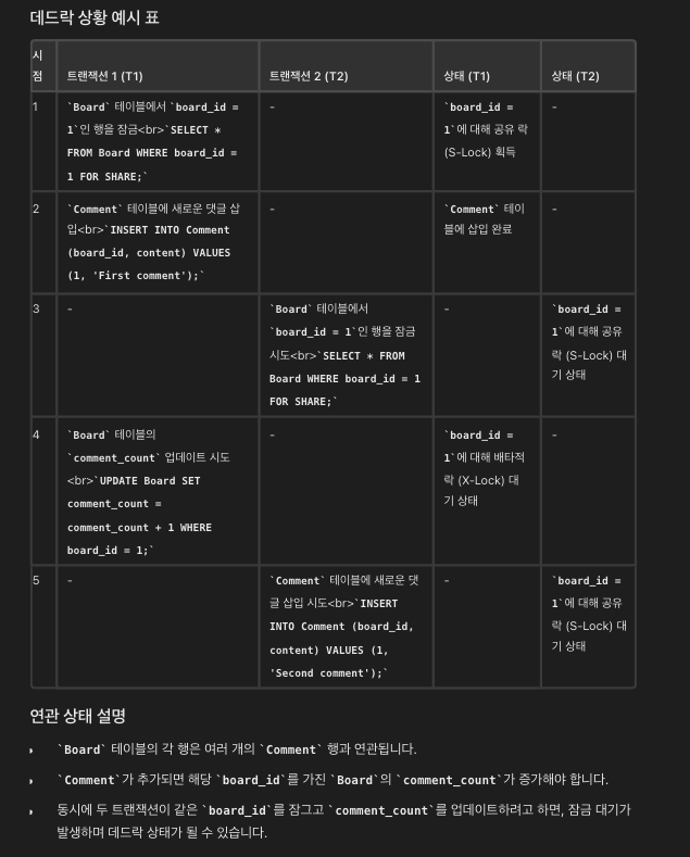 일반적인 프로그램 구현에서 SELECT FOR UPDATE로 데이터 조회 후, DB 외에 원격 서버로 처리를 요청하는 경우가 많다. 그런데 원격 서버의 응답이 느려지면 MySQL 서버의 트랜잭션도 계속 활성 상태로 남아 있게 된다. 결과적으로 레코드의 잠금이 풀리지 않아서 다른 트랜잭션 처리가 막히는 문제가 생길 수 있다.