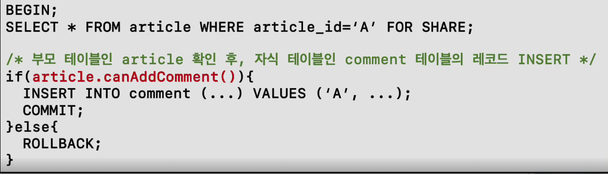 부모 테이블의 SELECT와 자식테이블의 INSERT 시점 사이에, 부모 데이터 삭제를 방지한다.