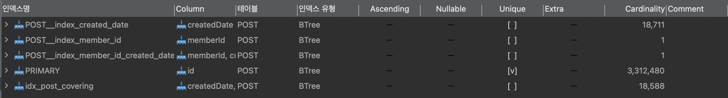 POST 테이블에 유저아이디 1로 검색을 하면 4개의 데이터가 존재한다.