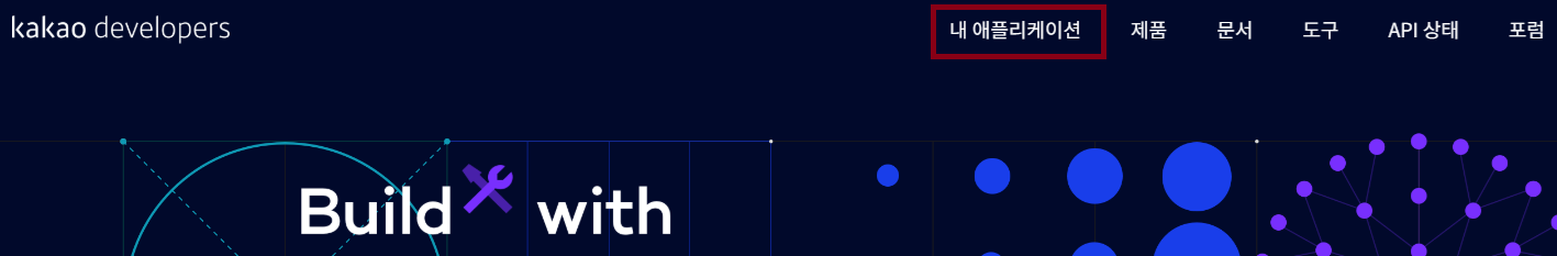 카카오에서 제공하는 API를 사용하기 위해서는 우선 카카오 개발자 사이트에 접속하여 애플리케이션을 등록해야한다.